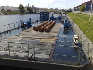 Ponton Fluvial APPLEDORE Location de Ponton Fluvial Monolythique Tarif du produit / jour: Imprimer la fiche Demande de devis Consulter les tarifs de location Dimensions Longueur : 30.76 m Largeur : 9.23 m Creux : 2.15 m Surface : 284 m² Tirant d’eau à vide : 0.45 m Tirant d’eau maximal : 1.54 m Charge Charge répartie : 180 t Charge ponctuelle : 6 t /m² Charge Charge répartie : 230 t Charge ponctuelle : 5.7 t/m² Propulsion Type : Hydro Armor HD 2400 Equipement standard Treuil : 4 treuils manuels, 1 treuil d’ancre Bollard : 8 Platelage : 1 Conteneur centrale hydraulique pour commande des pieux Equipement optionnel Nombre de pieux : 3 Longueur de pieux : 12 m Garde corps : 26
